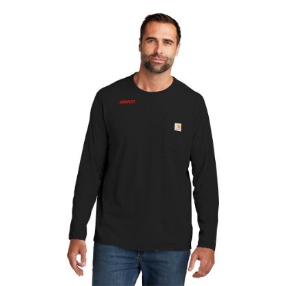 This tee fights sweat and stains and is built to work. Durable 5.75-ounce, 65/35 cotton/poly plaited jersey knit 59/41 cotton/poly (Heather Grey) 60/40 cotton/poly (Carbon Heather). FastDry technology wicks away sweat. Stain Breaker technology releases stains. Plaited knit construction so that poly is against the skin for moisture transportation while cotton on the face pulls moisture to the exterior. Raglan sleeves to increase range of motion. Left chest pocket. Contrast neck tape. Tagless neck label. Smooth flatlock seams. Carhartt label sewn on left chest pocket. Carhartt Force labeling on left sleeve Relaxed fit
